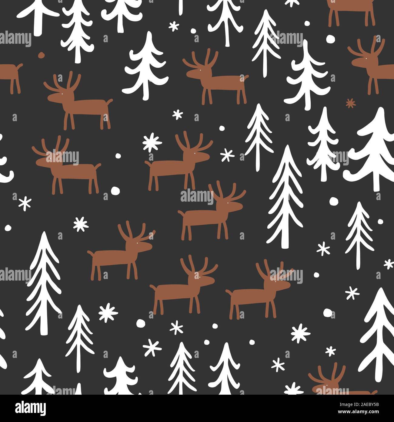Vector Christmas Seamless Pattern With Cute Cartoon Deer