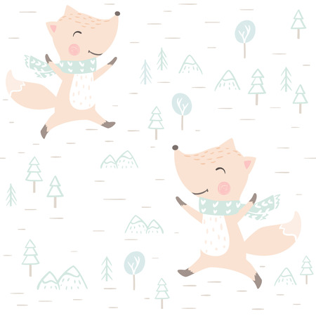 Fox Baby Winter Seamless Pattern Cute Animal In Warm Scarf