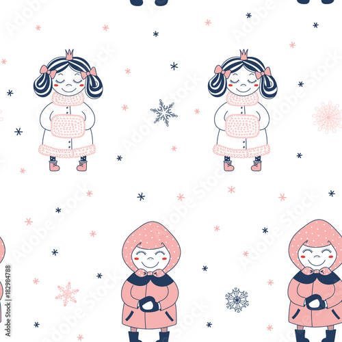 Hand Drawn Seamless Vector Pattern With A Cute Princess With