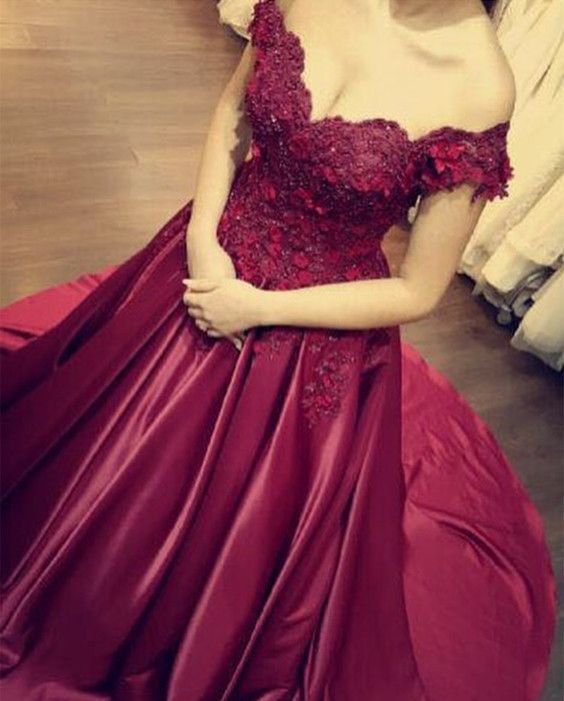 Lace Red Satin Off Shoulder Quinceanera Ball Gown Lunss