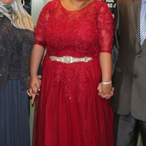 Floor Length Modified Red Chinese Dress Embroidery Lace Boat